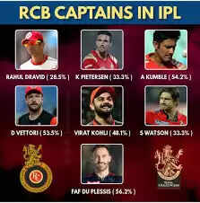 Among the seven captains, Kohli, Kumble, and Dravid are the only Indian players to have led RCB, while Daniel Vettori, Kevin Pietersen, Faf du Plessis, and Shane Watson are the four overseas players to have taken on the role.