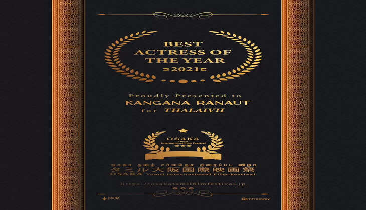 Kangana Ranaut Receives Best Actress Award for 'Thalaivii' at Osaka Tamil International Film Festival