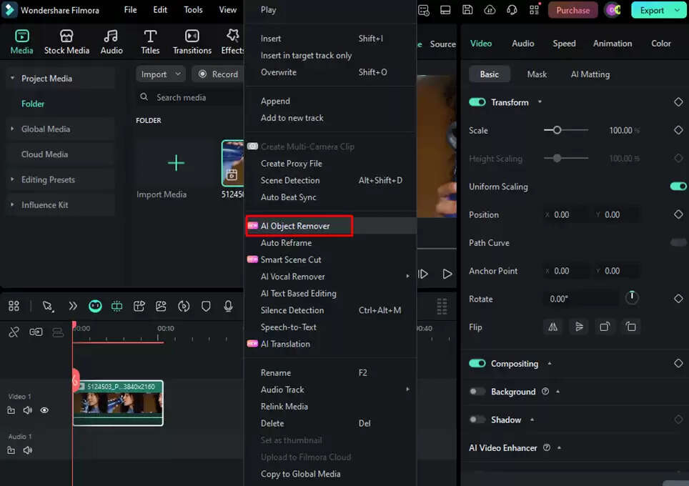 Step 1: Import your video and select AI Object Remover